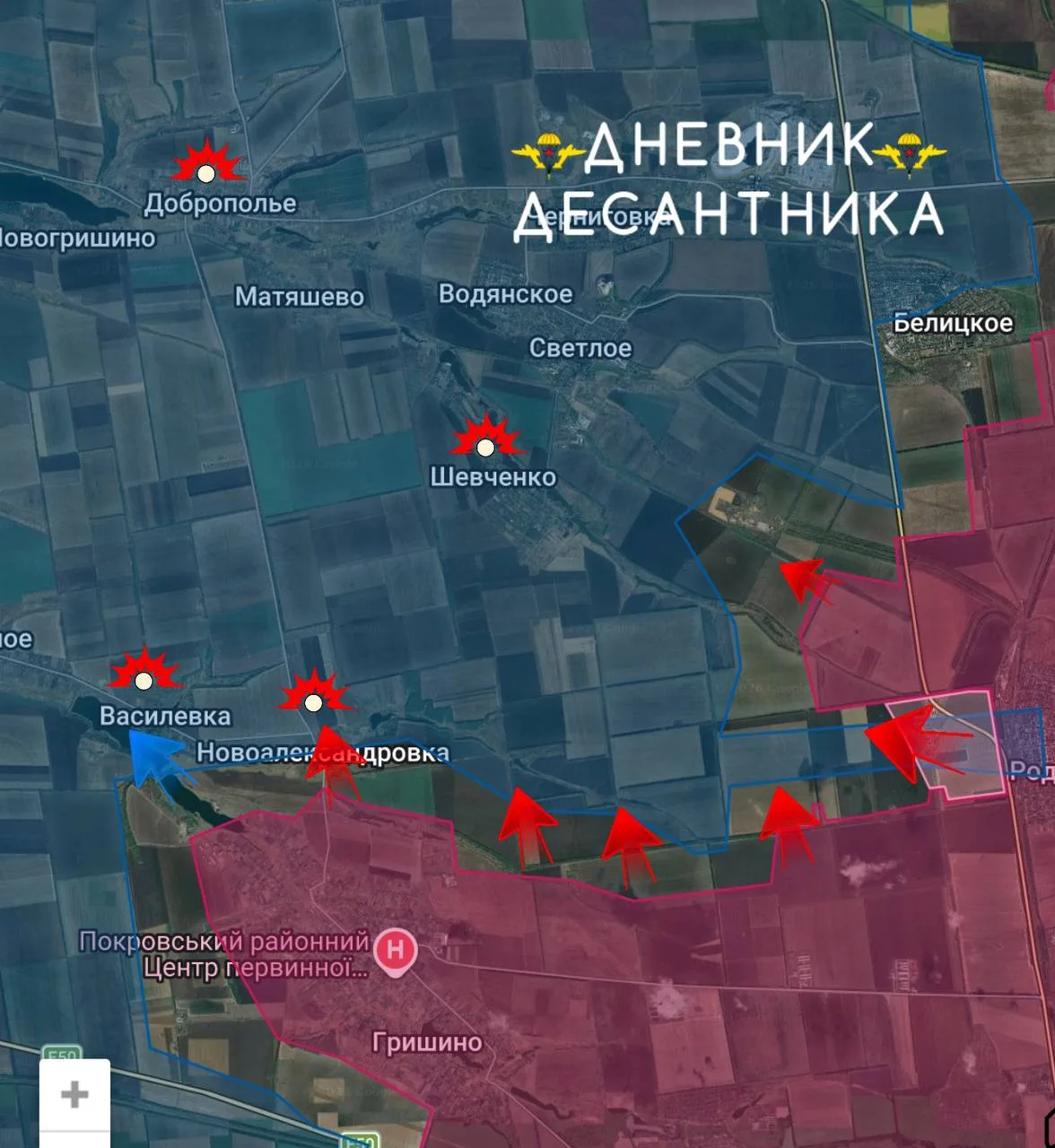 Продвигаемся мы и в направлении Доброполья по трассе в районе Новоалександровки, практически все село уже под нашим контролем, восточнее села идут бои за территорию у реки Гришинка и лесных массивах, сообщает канал "Дневник Десантника".