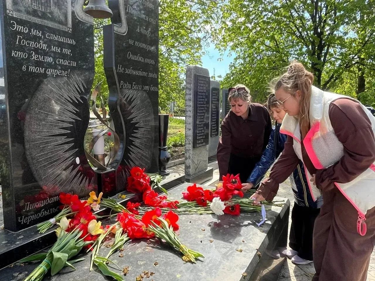 Школьники почтили минутой молчания тех, кто ценой своей жизни и здоровья остановил распространение смертельной угрозы. Ребята возложили живые цветы к мемориалу, отдавая дань глубокого уважения подвигу героев-чернобыльцев.