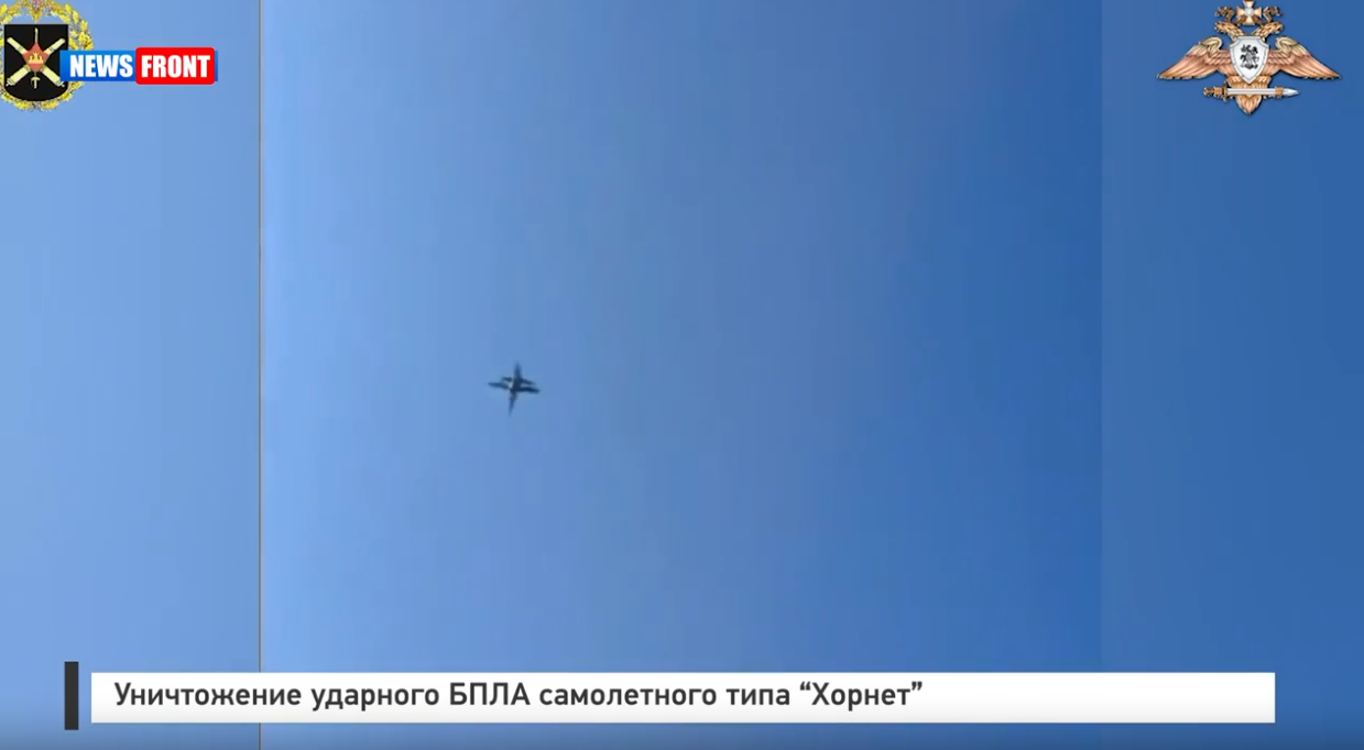 На кадрах видео запечатлен момент уничтожения ударного БПЛА самолетного типа «Хорнет» ВСУ.