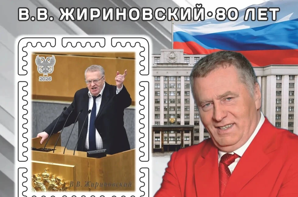 Уникальный почтовый блок «В.В. Жириновский. 80 лет» выпущен ко дню рождения политика — 25 апреля 2026 года он мог бы отметить 80-летие.