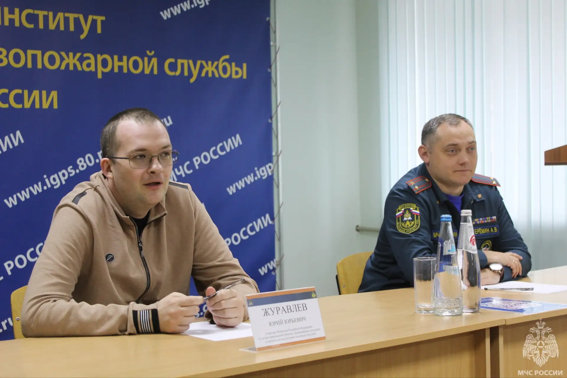 По поручению главы МЧС России Александра Куренкова советник Министра 3 класса Юрий Журавлёв посетил Донецкий институт ГПС МЧС России. Он ознакомился с оснащенностью факультетов и ходом ремонтно-восстановительных работ общежития и административного корпуса, после чего провёл рабочую встречу с руководством Донецкого института ГПС МЧС России.