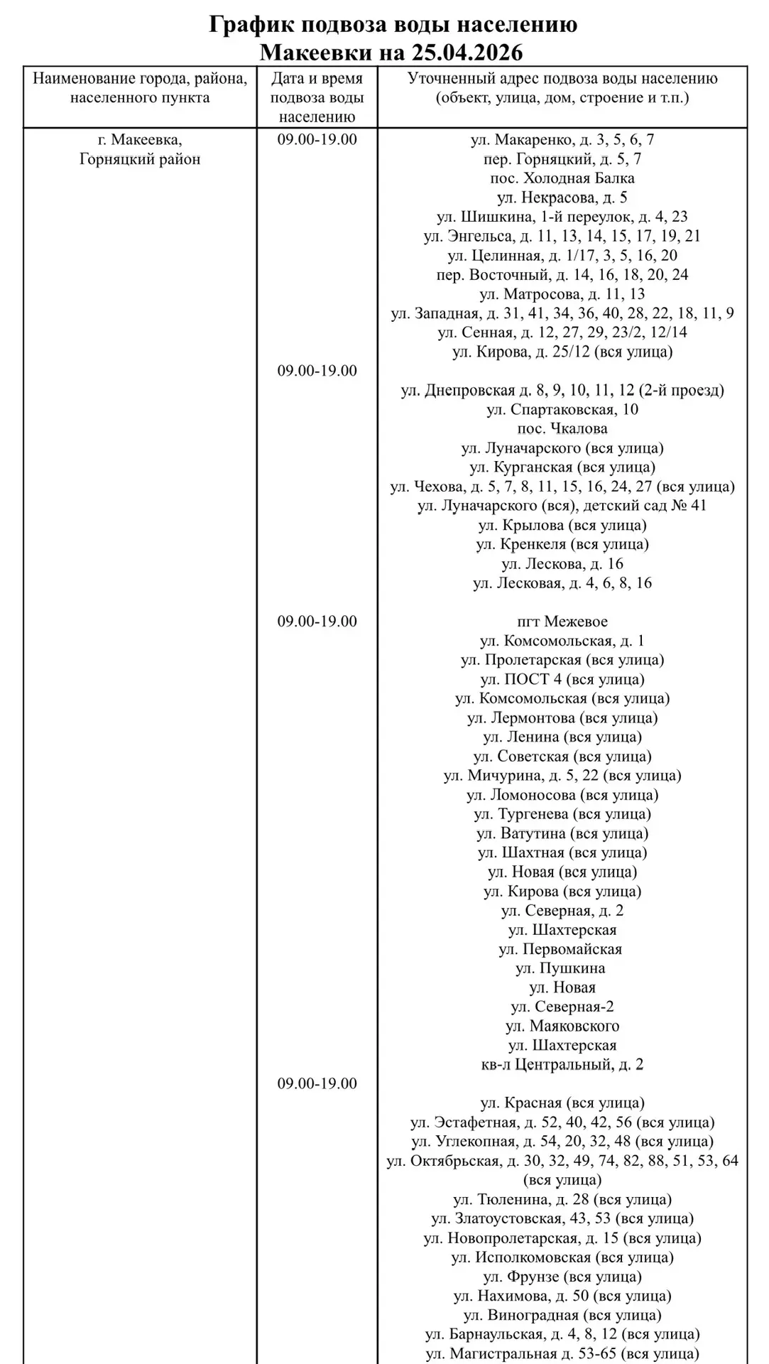 Завтра, 25 апреля, в Макеевке будет организован подвоз воды для жителей, в дома которых не поступила вода в установленный графиком день.