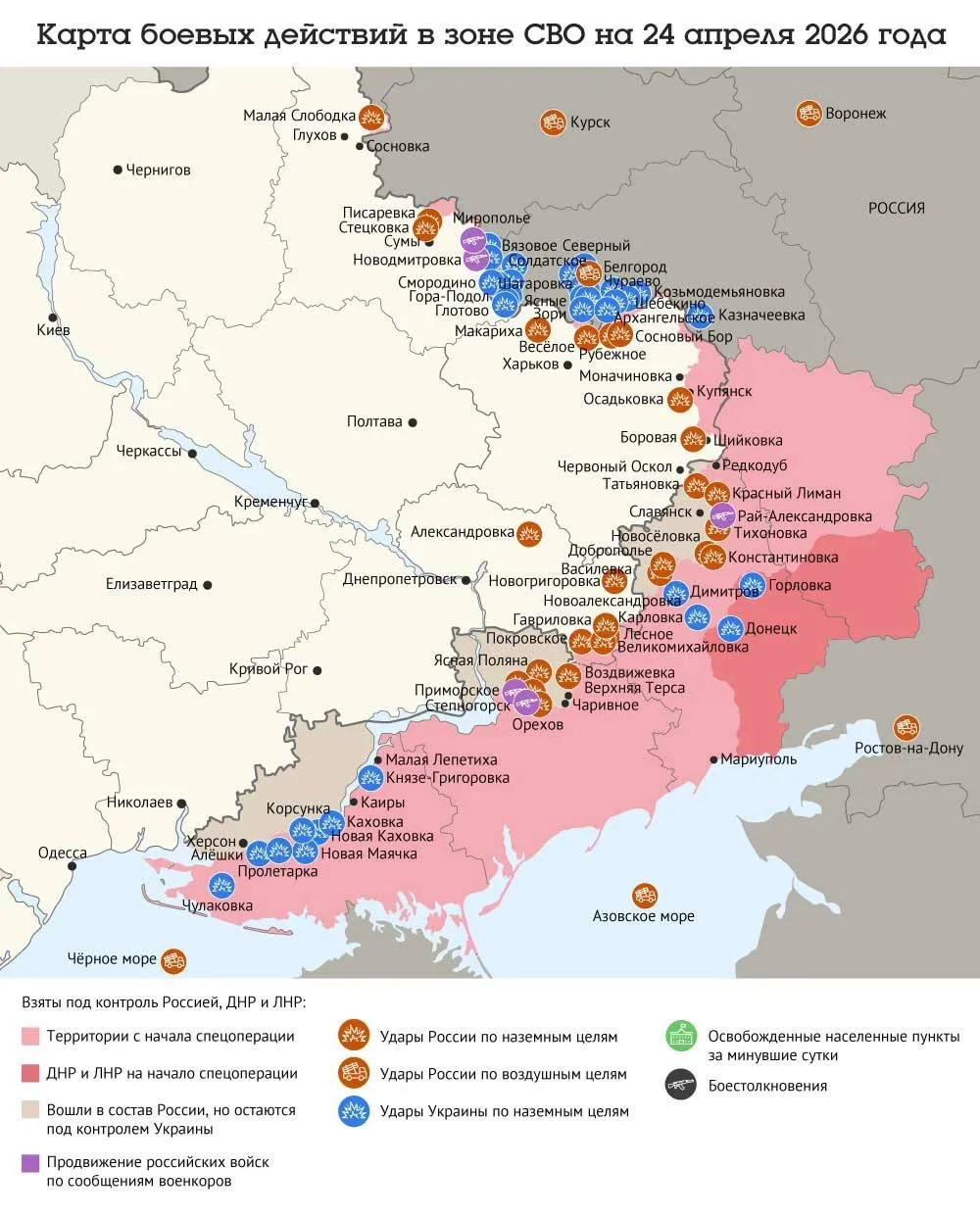 Карта боевых действий в зоне СВО на 24 апреля 2026 года