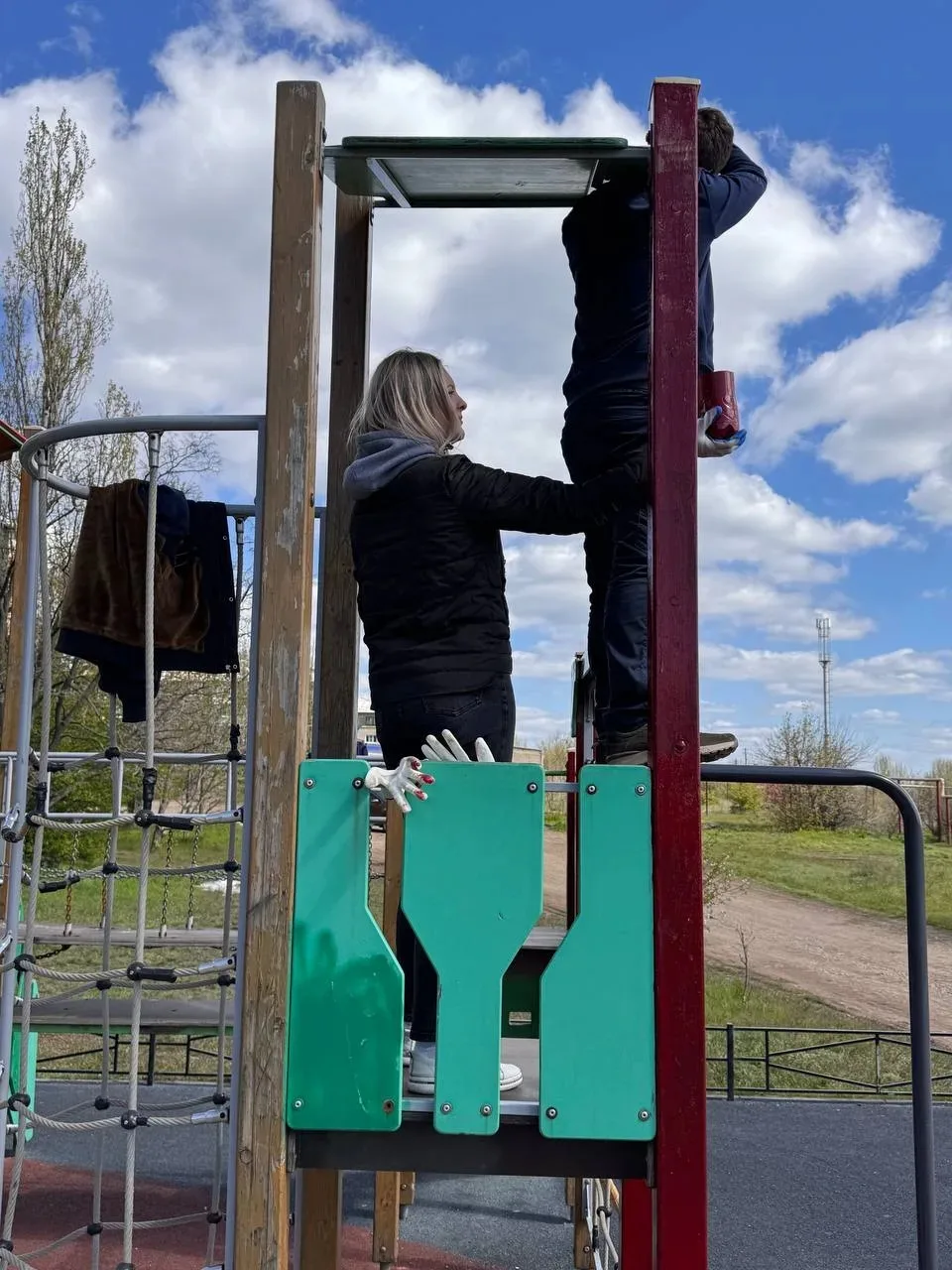 Были выполнены работы по уборке и покраске элементов детской площадки.