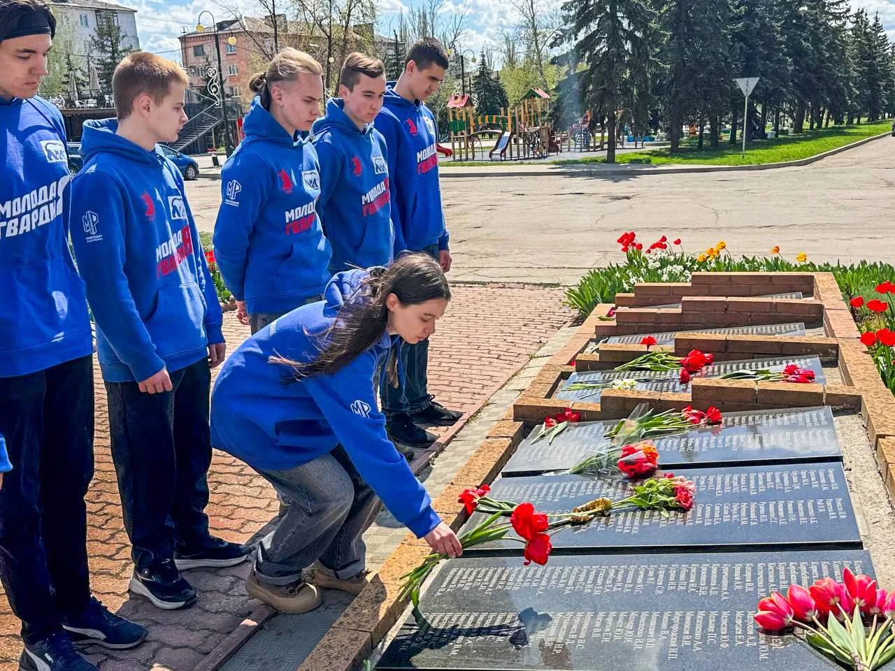 В память о погибших 26 апреля активисты Молодёжки Горловки возложили цветы к памятнику.