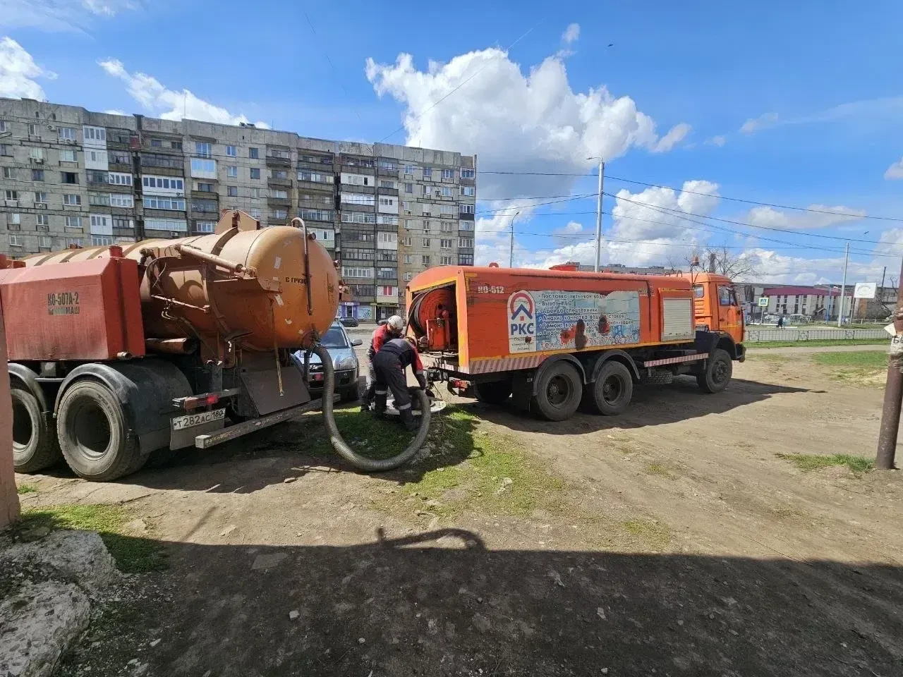 В работах задействованы несколько человек, а также ассенизаторская и каналопромывочная машины.