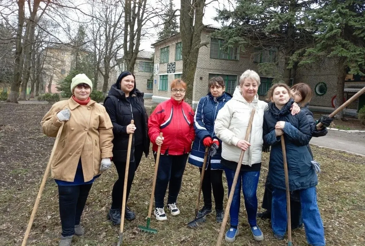 В рамках мероприятий по благоустройству в весенний период коллективами ГБДОУ «Детский сад № 110 общеразвивающего вида городского округа Макеевка», ГБУ ДНР «Городской противотуберкулёзный диспансер» и Станция переливания крови города Макеевки проведены субботники на закрепленных и прилегающих к ним территориях. Выполнена уборка газонов от прошлогодней листвы, подметены пешеходные дорожки и тротуары, уборка смёта под бордюром, собран видимый мусор.