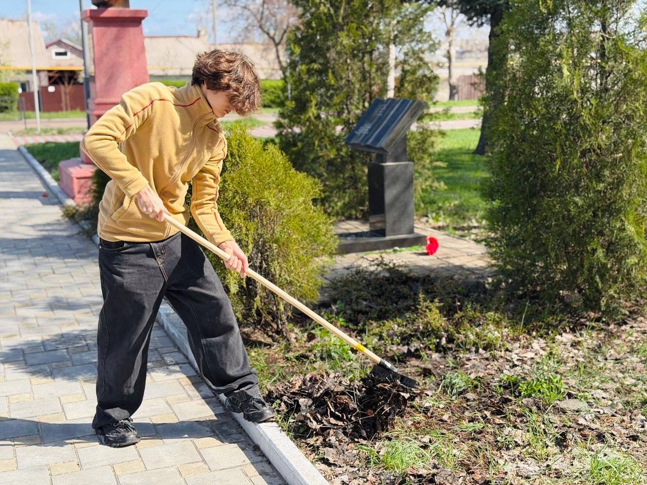 Отдел по делам молодёжи и спорта, военный комиссариат Ясиноватского МО и отряд Юнармии ГБОУ «Школа № 1 Ясиноватского МО» провели субботник на площади Славы у памятника Неизвестному солдату и мемориала «Книга Памяти».