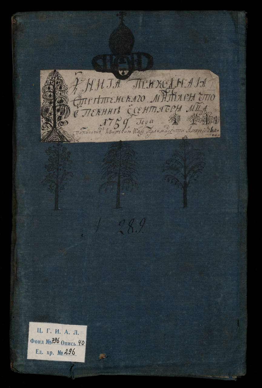 1. Книга приходная Сретенскаго монастыря, что в Пекине, сентября месяца 1759 г. – с печатью архимандрита Амвросия (Юматова). Российский государственный исторический архив.