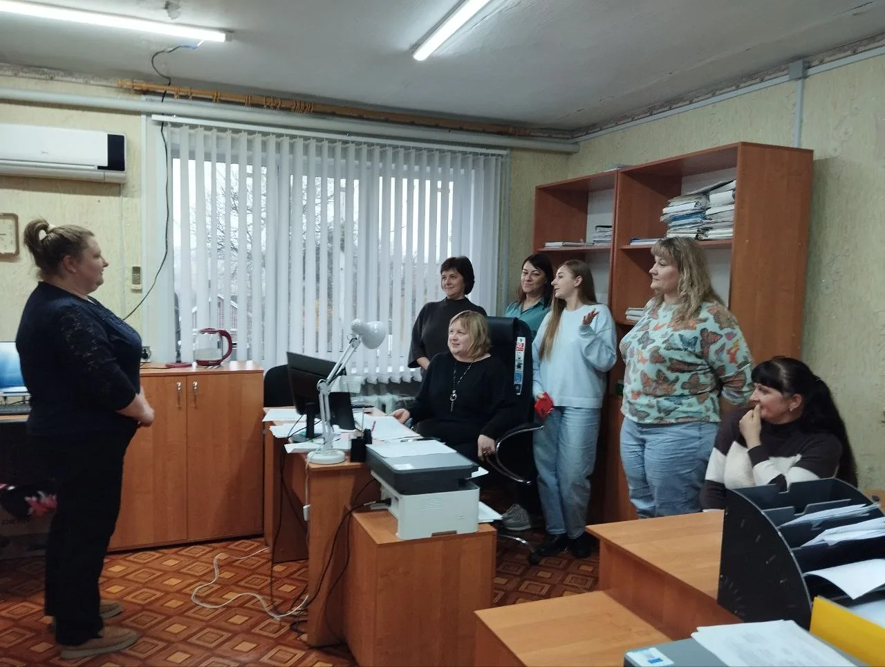 Депутат Тельмановского муниципального совета Юлия Налбат встретилась с коллективом отдела образования Администрации Тельмановского муниципального округа.