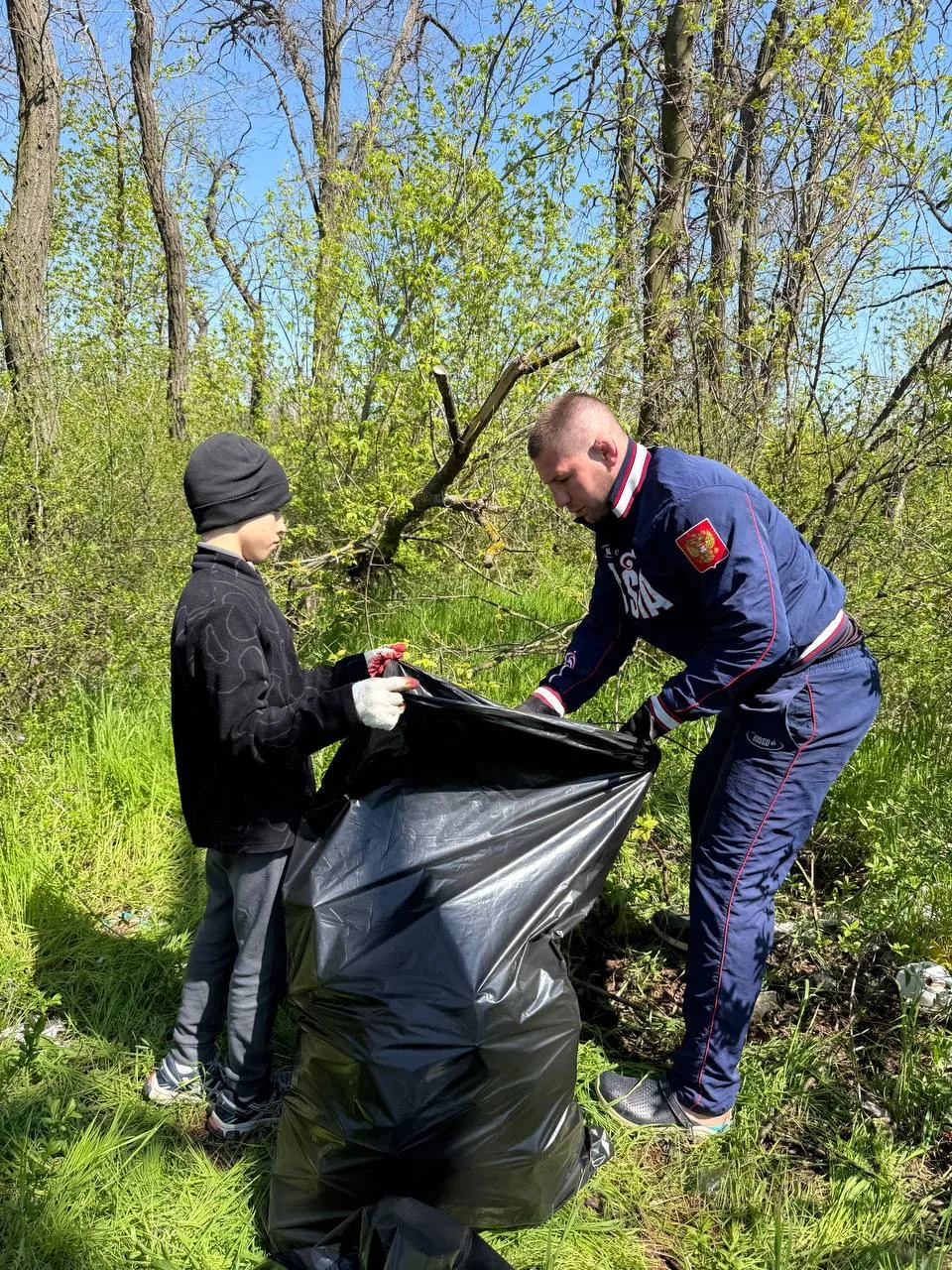 Министр спорта ДНР вместе с сыном присоединился к очистке водоема в Тельманово