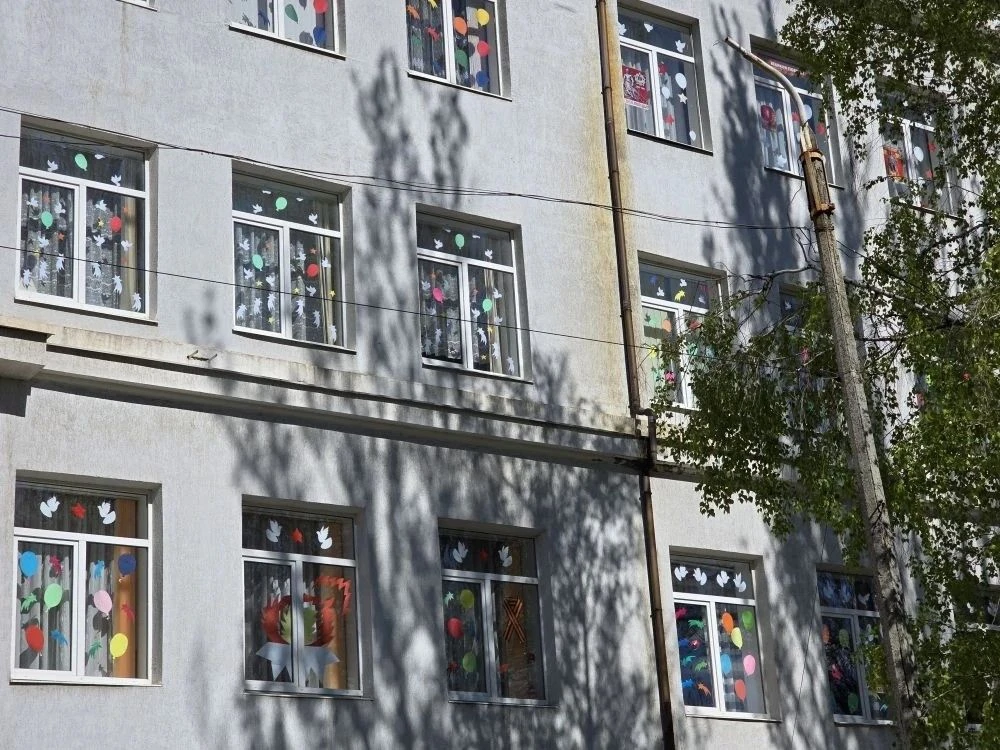 Ученики, родители и педагоги школы №2 украсили окна школы символами Великой Победы — георгиевскими лентами, звёздами, голубями мира и праздничными надписями. Каждая работа наполнена гордостью и уважением к подвигу наших ветеранов.