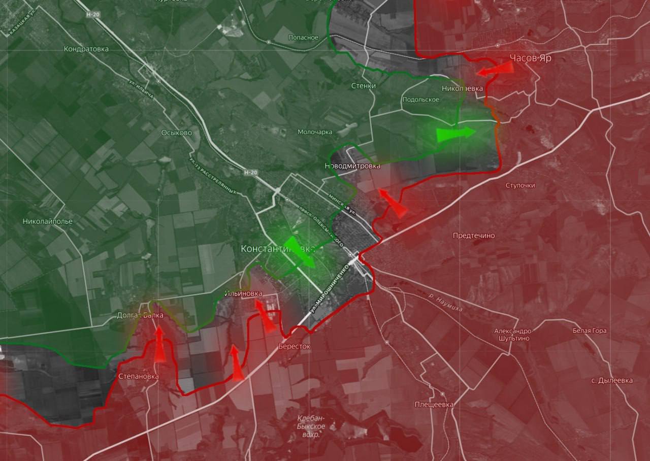 «На Константиновском направлении ВС РФ продвигаются со стороны Ильиновки, начав заход в городскую застройку Константиновки с юго-запада.