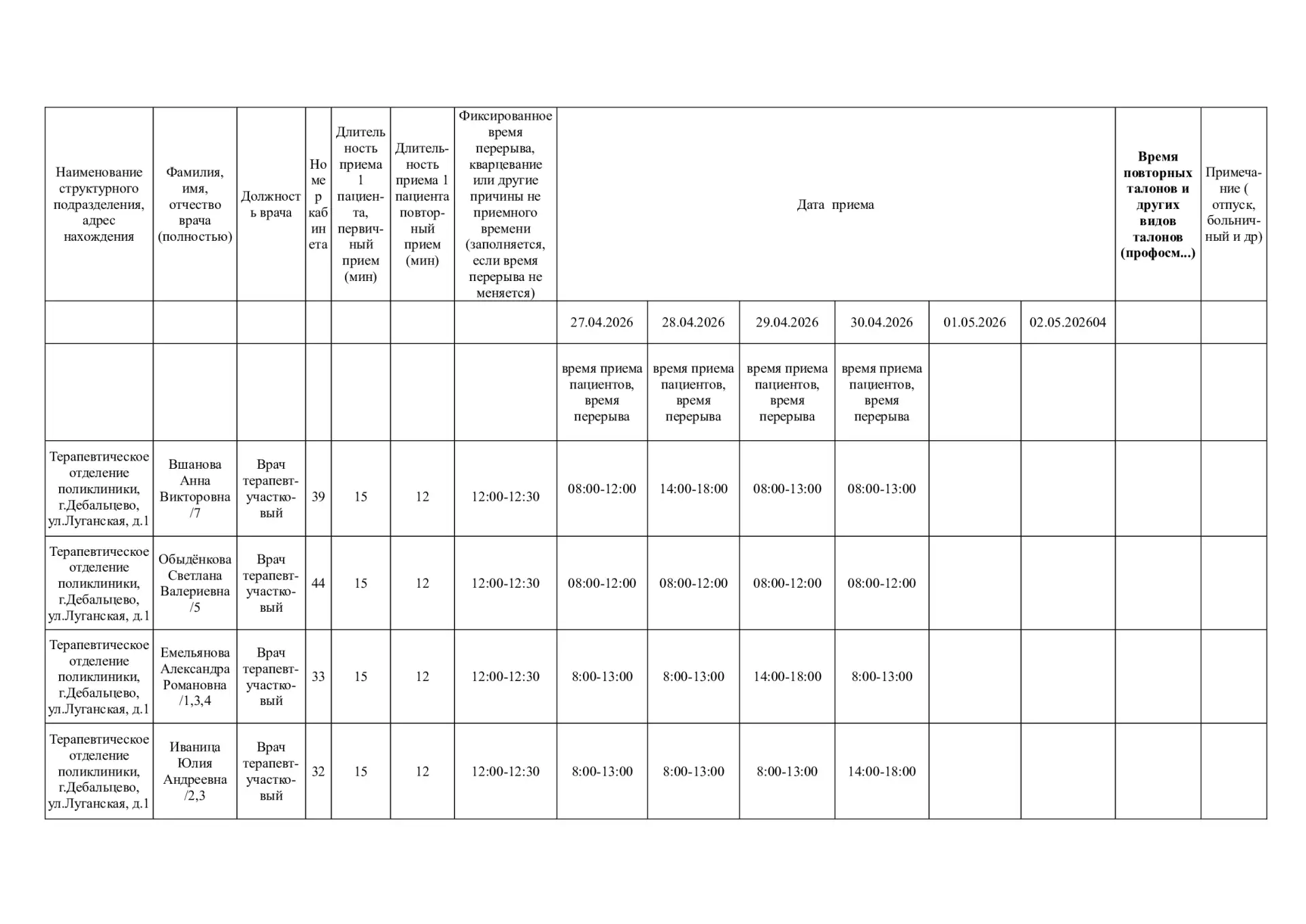 График приёма врачами