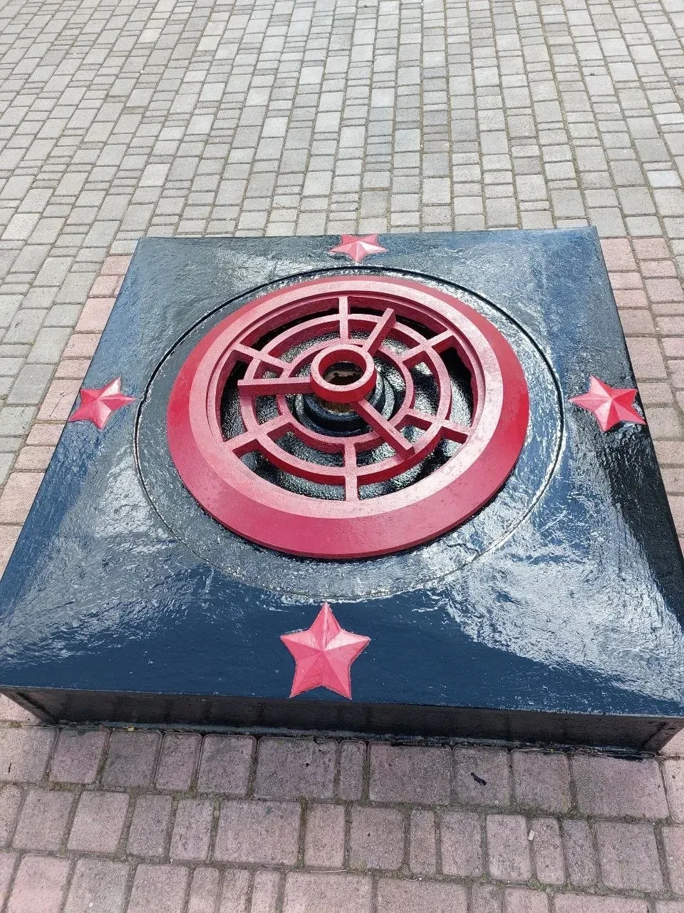 С памятника и вечного огня перед ним коммунальщики удалили старое покрытие, затем выровняли поверхности штукатуркой и заново покрасили.