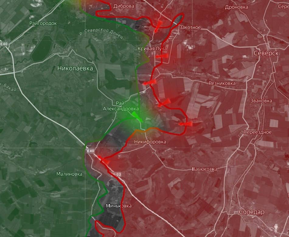 «На Славянском направлении российские войска продвигаются вдоль трассы М-03. Продолжаются бои за Рай-Александровку».