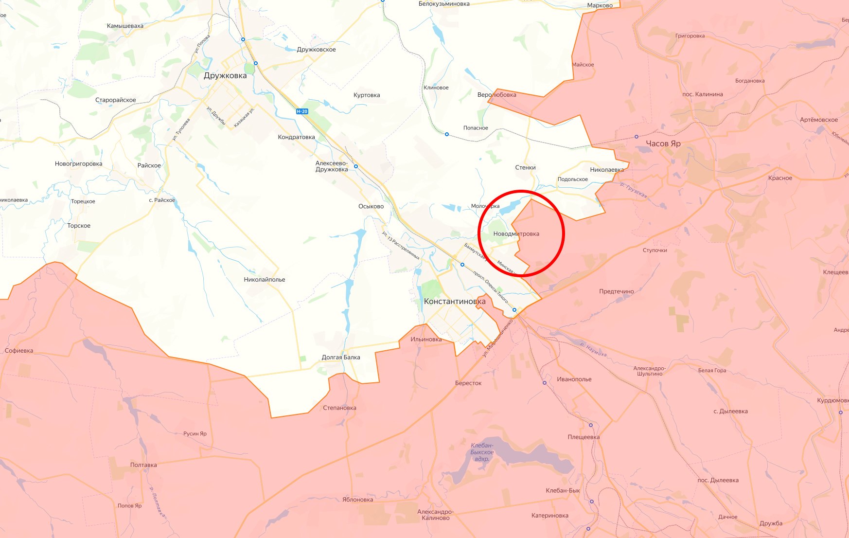 Вслед за Ильиновкой российские военные освободили Новодмитровку, охватывая город Константиновка с трёх сторон. Об этом в среду, 29 апреля, сообщает Министерство обороны Российской Федерации.