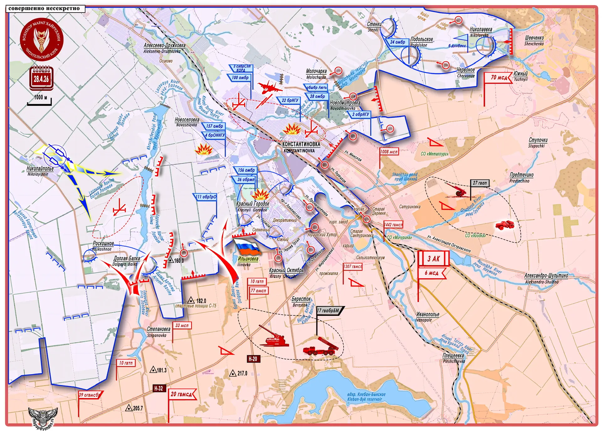 В боях за освобождение Константиновки подразделения группировки «Южная» вышли на важный рубеж в центе юго-восточной линии полосы наступления на город Короткая сводка с фронта 28 апреля 2026 года