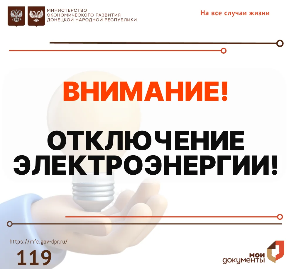 30 апреля 2026 года наблюдаются перебои в работе отделения МФЦ ДНР в связи с отключением электроэнергии по адресу: