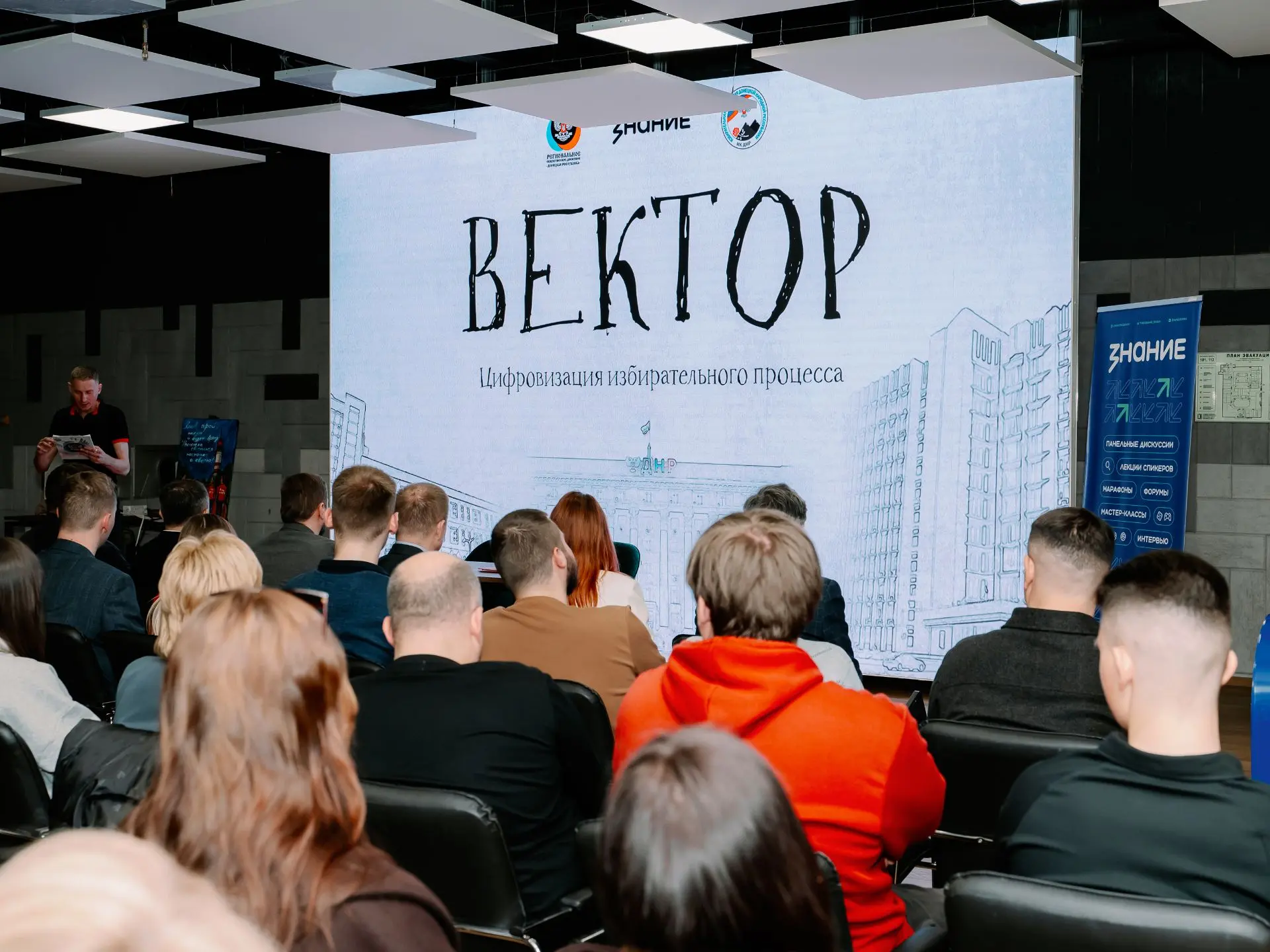 В Донецкой Народной Республике прошла масштабная просветительская сессия “Вектор”, организованная Избирательной комиссией ДНР совместно с Российским обществом “Знание” и Региональным Общественным Движением “Донецкая Республика”. Мероприятие собрало на одной площадке ключевых спикеров и представителей органов власти, а также самую активную аудиторию — молодежь региона.