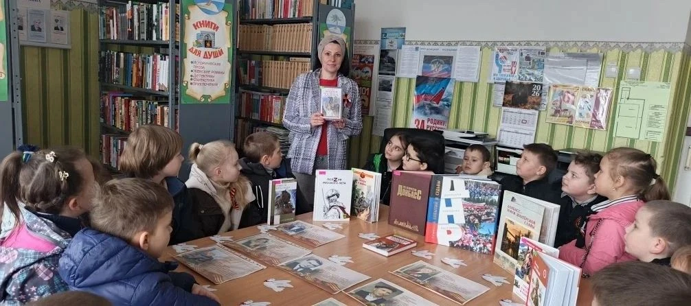 Особый отклик выставка нашла у подрастающего поколения. На днях её посетили ученики 2-го и 3-го классов ГБОУ «Школа № 24 г. о. Торез». Ребята не только внимательно изучили представленные книги, но и посмотрели видеоролик, посвященный Дню Победы. Он рассказывал о том, как на главной площади страны впервые отмечали знаменательный день 9 мая.