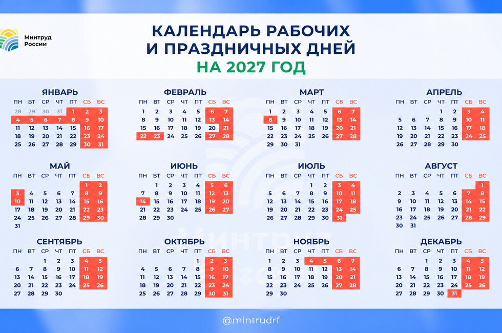 Донецк, 30 апр — ДАН. Новогодние каникулы в 2027 году продлятся 11 дней: с 31 декабря до 10 января. Это следует из опубликованного Минтруда проекта производственного календаря.