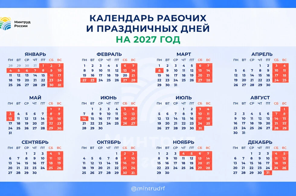 Новогодние праздники в 2027 году продлятся 11 дней
