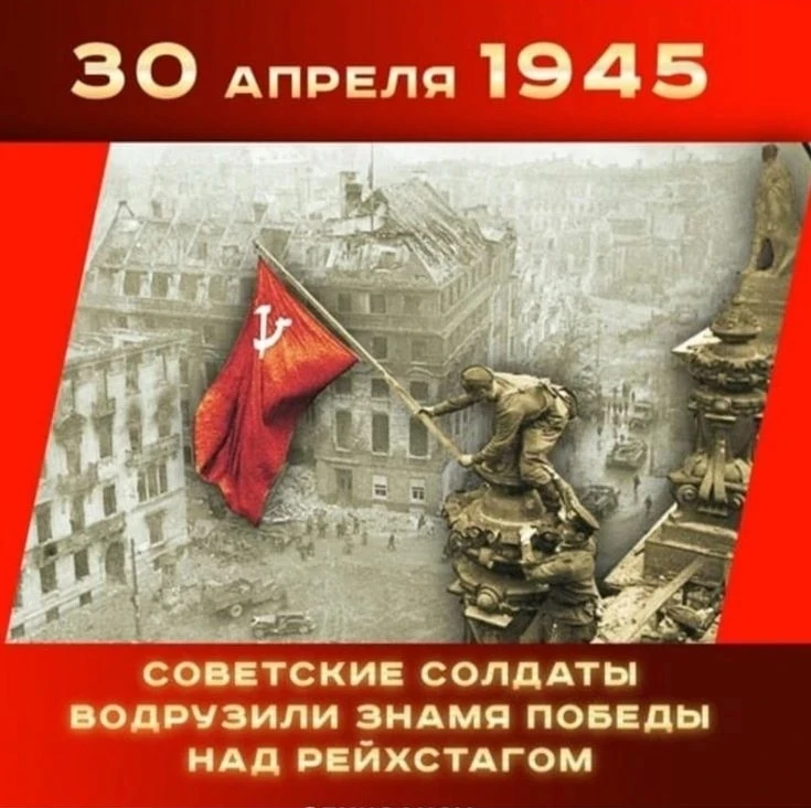 30 апреля 1945 года советские воины водрузили Знамя Победы над зданием Рейхстага в Берлине. Это был штурмовой флаг 150-й стрелковой дивизии 3-й ударной армии 1-го Белорусского фронта.