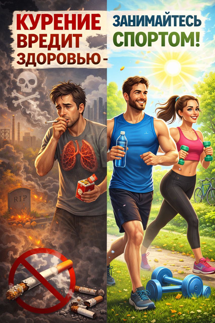 Курение разрушает здоровье и сокращает жизнь. Отказ от сигарет и регулярные занятия спортом помогают укрепить организм, повысить выносливость и сохранить активность на долгие годы. Сделайте выбор в пользу движения и чистого дыхания.